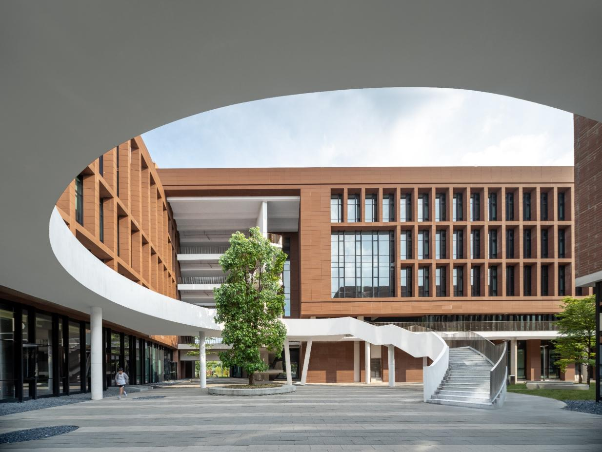 一是傳承創新何鏡堂院士“兩(liǎng)觀三性”設計思想,以“合璧”作爲校園總體規劃理念,依托“十三五”國(guó)家重點課題,創立夏熱冬暖地區适應型綠色設計策略,研究應用環境布局、疏式冷巷通風、建築群落空間組織、立面(miàn)遮陽、垂直通風等綠色設計技術,引領我國(guó)教育建築綠色化發(fā)展。