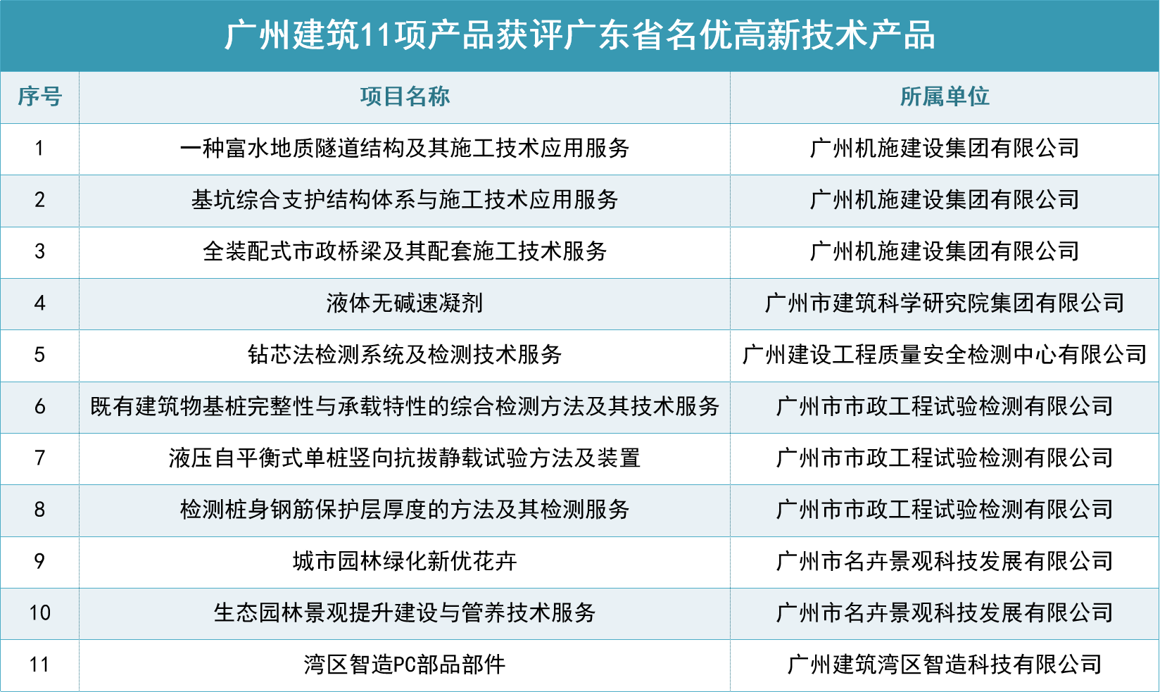 廣州建築11項産品獲評廣東省名優高新技術産品